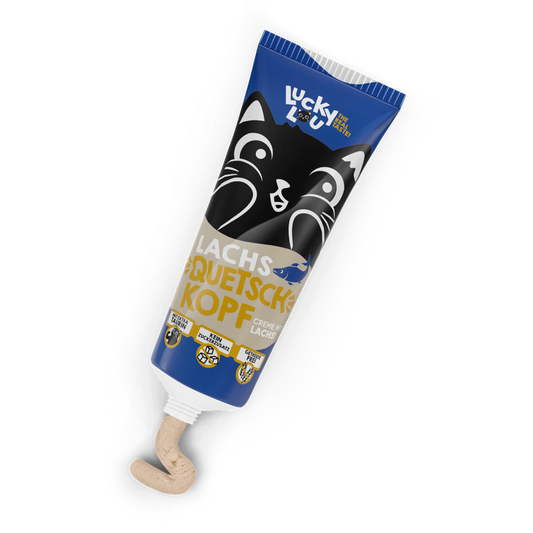 Lucky Lou® Quetschkopf Adult Katzenfutter – Lachs (75g)