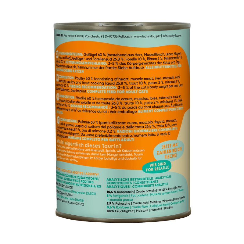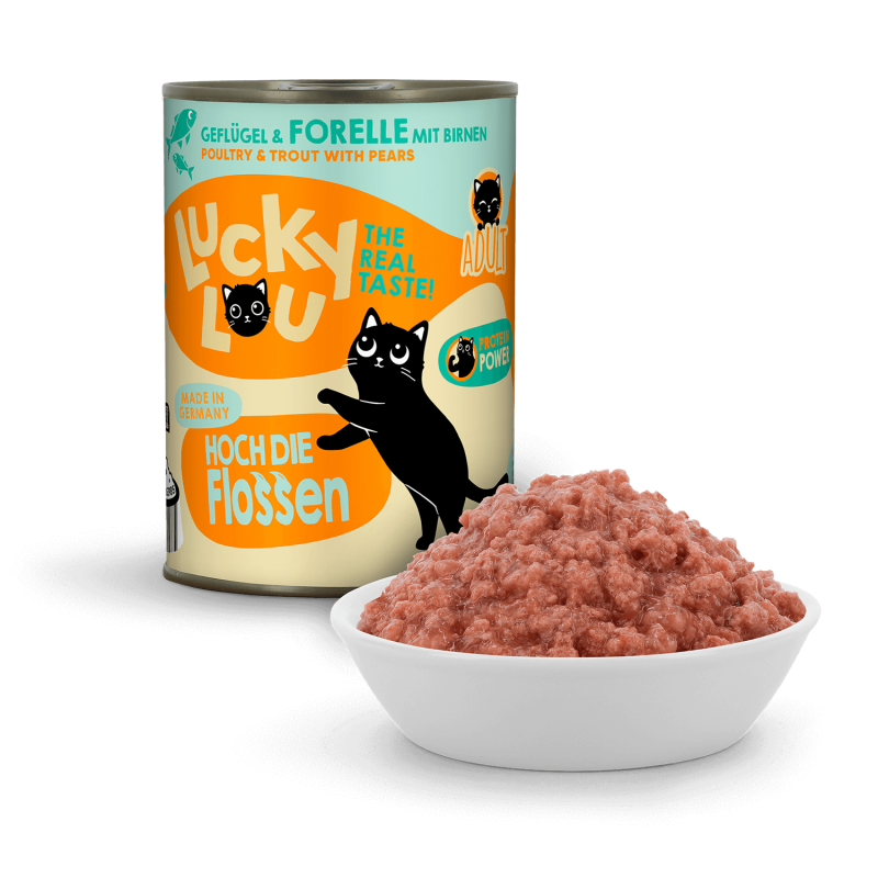 Lucky Lou® Lifestage Adult Geflügel & Forelle bringt deiner erwachsenen Katze den Geschmack der Natur direkt in den Napf!