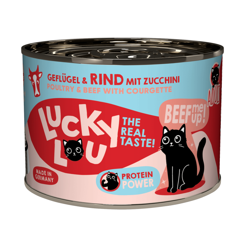 Das Alleinfutter für coole Katzen, Lucky Lou Lifestage Adult Geflügel & Rind, ist eine köstliche Mahlzeit aus hochwertigem Protein, pflanzlichen Kohlenhydraten, Mineralstoffen und hochwertigem Öl. Ohne Getreide, Gluten und Zuckerzusätze, bietet es echten Geschmack und die Nährstoffe, die Katzen brauchen.